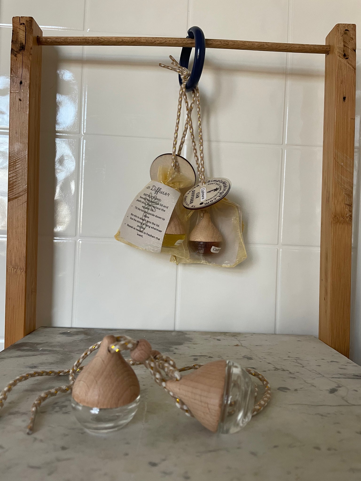 If you’ve been looking for a way to lightly freshen your car, I’ve got you covered. These sweet little teardrop shaped diffusers give the perfect amount of scent as you need it. Just unscrew the cork top, remove the plastic plug, screw the cork top back in place, tilt and let the scent blend soak into the cork as desired. Need a little more scent? Tilt a little longer. Works great in cars, but also can be used anywhere it can hang.