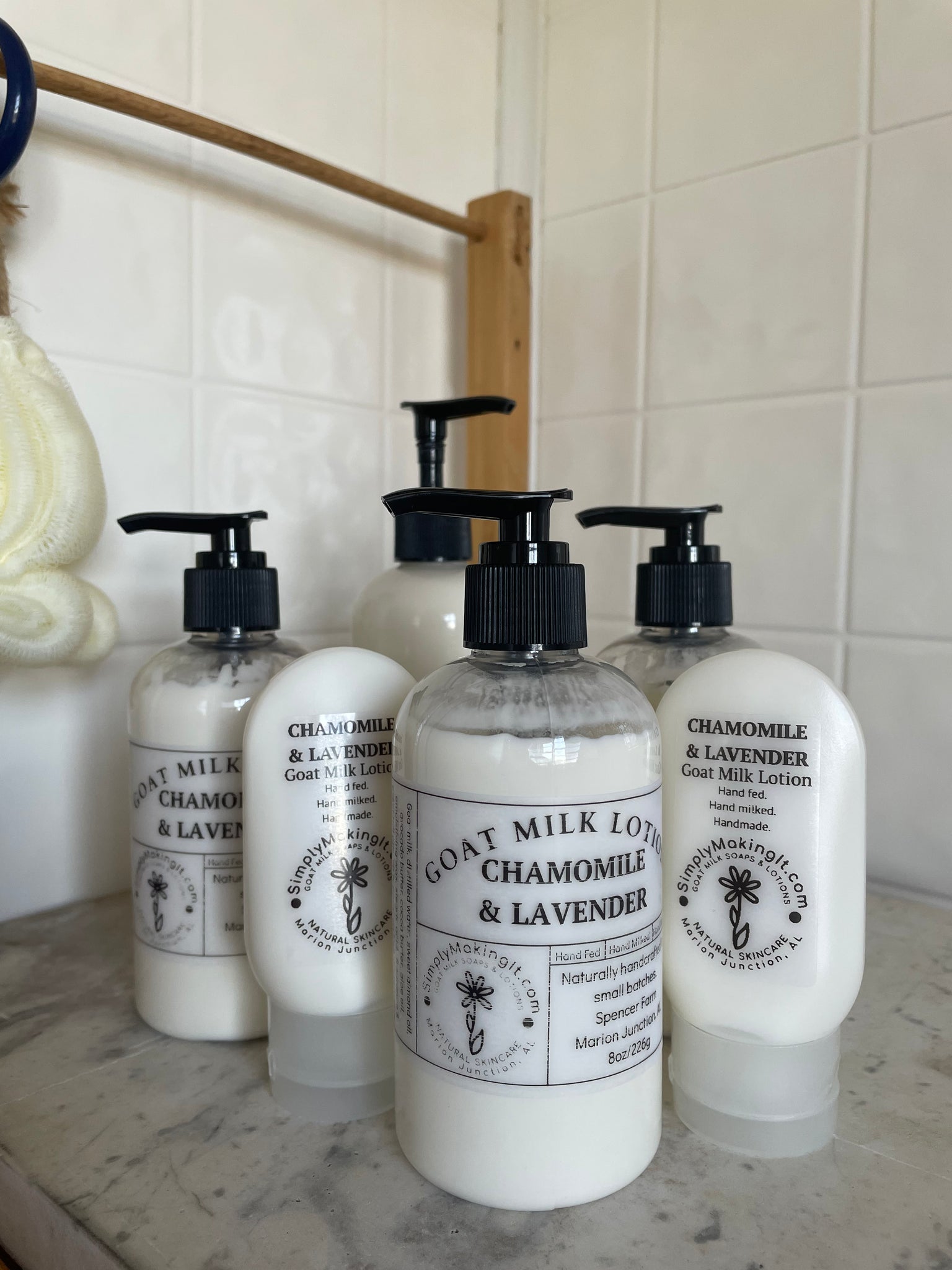 Made with real goat's milk from our farm, this moisturizing lotion contains essential oils, avocado oil, avocado butter, sweet almond oil, cocoa butter, and vitamin E. Other ingredients essential to creating lotions are emulsifying wax, stearic acid, and a light preservative.