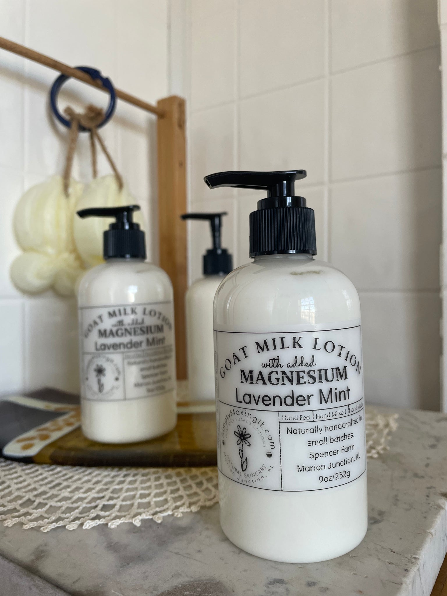 A soothing twist on your favorite goat milk lotion. This Goat Milk Lotion with Magnesium blends the creamy nourishment of fresh goat milk with added magnesium for an extra touch of relaxation—perfect for unwinding at the end of the day.