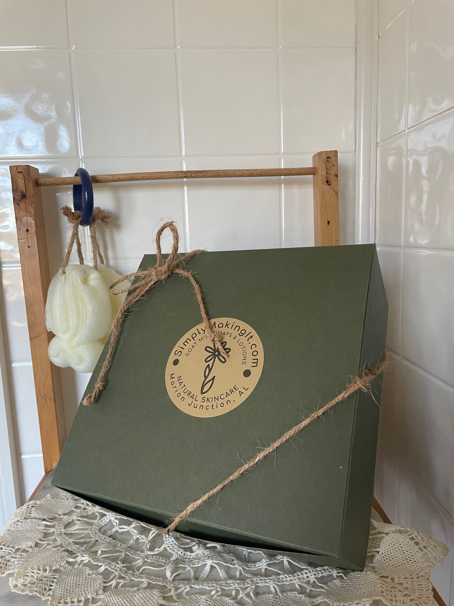 This sampler set includes 2 bars of goat milk soap, 1 bath bomb, 1 small goat milk lotion, 1 lip shimmer, and 1 sugar scrub. The perfect gift for Mother's Day or Graduation, boxed, tied with a bow, and ready to give! You can specify soap and lotion scents in the notes section, or simply let us pick for you.