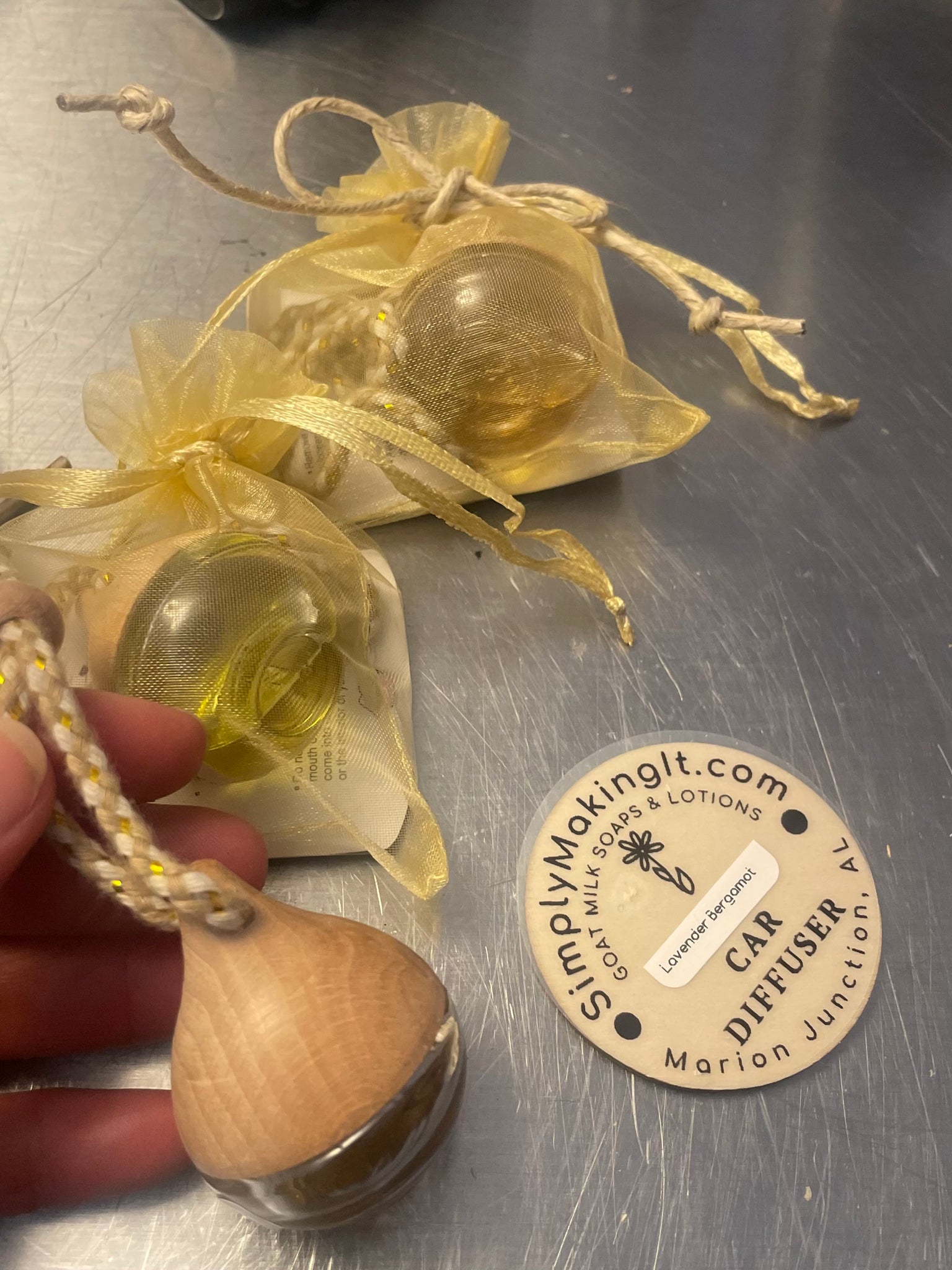 If you’ve been looking for a way to lightly freshen your car, I’ve got you covered. These sweet little teardrop shaped diffusers give the perfect amount of scent as you need it. Just unscrew the cork top, remove the plastic plug, screw the cork top back in place, tilt and let the scent blend soak into the cork as desired. Need a little more scent? Tilt a little longer. Works great in cars, but also can be used anywhere it can hang.