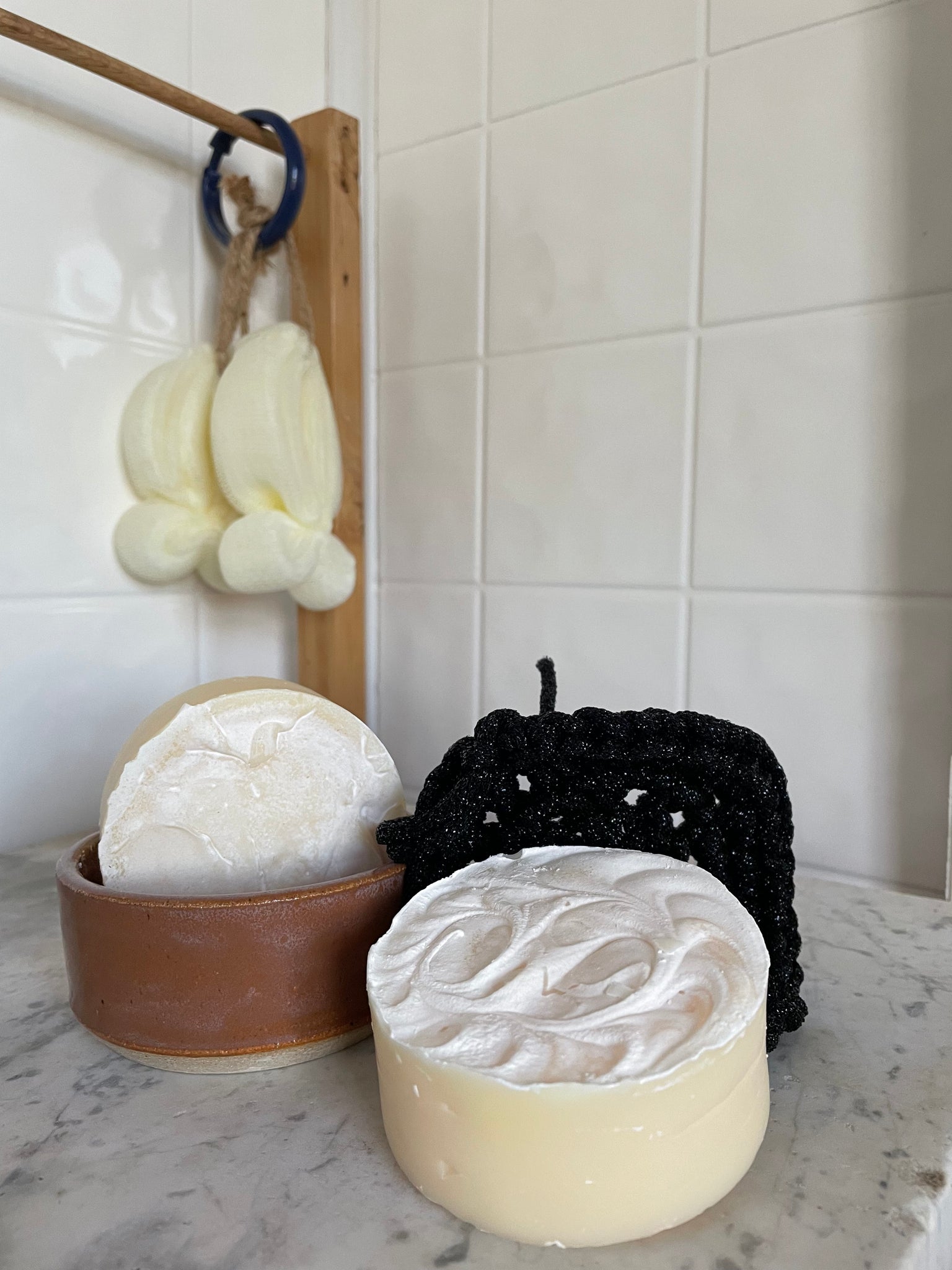 Each 5 oz soap disc is made with saponified coconut and castor oil, and scented with Lemongrass Essential Oil.